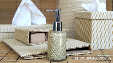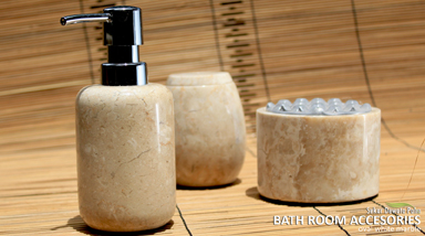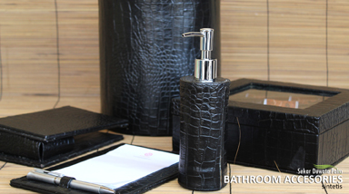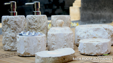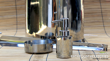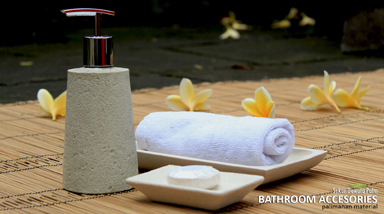 BATHROOM ACCESORIES : Bottle dispenser shampoo, Soap Dish, Bottle bath foam, Bottle bath salt,  Tissue Box, Rubbish Bin