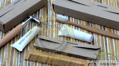 GUEST ROOM AMENITIES : Dental Kit, Shaving Kit, Comb, Cotton Buds, Sanitary Bag, Laundry Bag, Slipper, Box Set Amenities